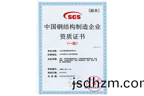 中(zhong)國(guo)鋼結(jie)構(gou)製造企(qi)業資質(zhi)證書(shu)(一級(ji))