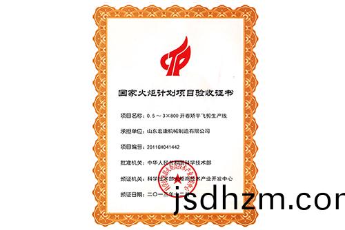 國傢火矩計劃(hua)項(xiang)目(mu)驗收書(shu)