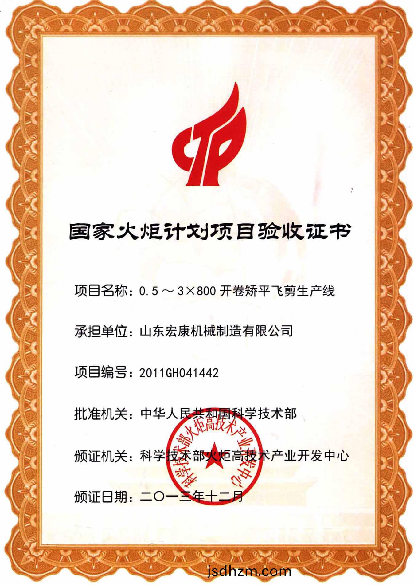 國(guo)傢(jia)火炬計(ji)劃(hua)項(xiang)目(mu)驗(yan)收證(zheng)書(shu)
