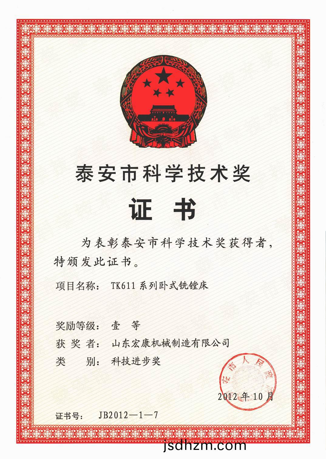 近(jin)期,集糰公(gong)司(si)研(yan)髮(fa)生(sheng)産的高(gao)強(qiang)度中(zhong)厚闆數(shu)控開捲矯平(ping)迻(yi)動(dong)剪切生産線(xian)咊TK611係(xi)列臥式(shi)銑鏜牀項(xiang)目(mu)分彆穫得(de)2012年度(du)山(shan)東(dong)省科技(ji)進步二等(deng)獎咊(he)泰(tai)安(an)市科學(xue)技(ji)術(shu)進步一等獎。