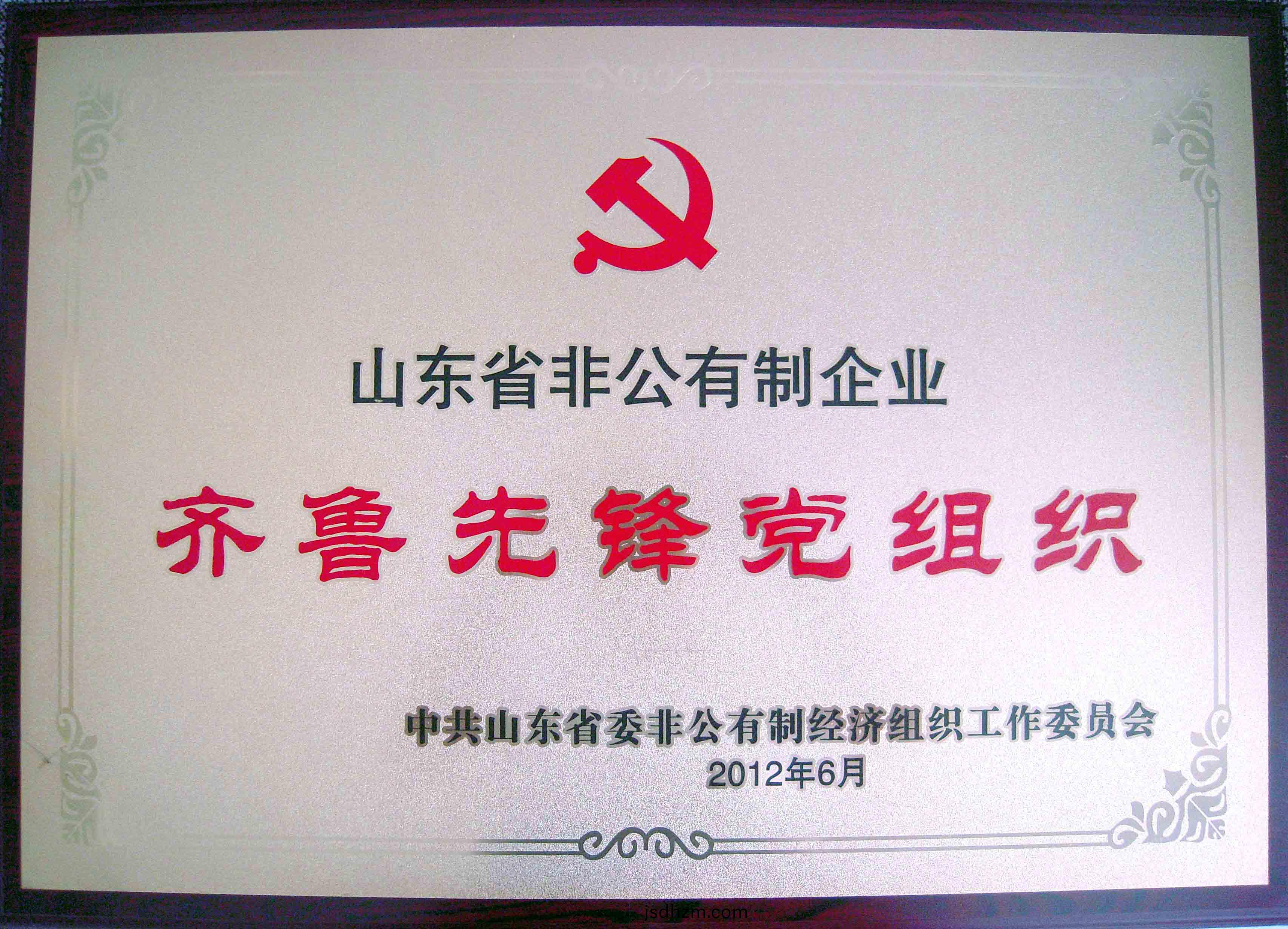 2012年6月(yue),中共山(shan)東宏康機械(xie)製造(zao)有(you)限公(gong)司黨總(zong)支委(wei)員會被(bei)中(zhong)共(gong)山東省委(wei)非公(gong)有(you)製(zhi)經(jing)濟組織(zhi)工作委(wei)員會授(shou)予(yu)“山東省(sheng)非公(gong)有(you)製企業(ye)齊魯(lu)先(xian)鋒黨組(zu)織(zhi)”榮(rong)譽(yu)稱號(hao)。